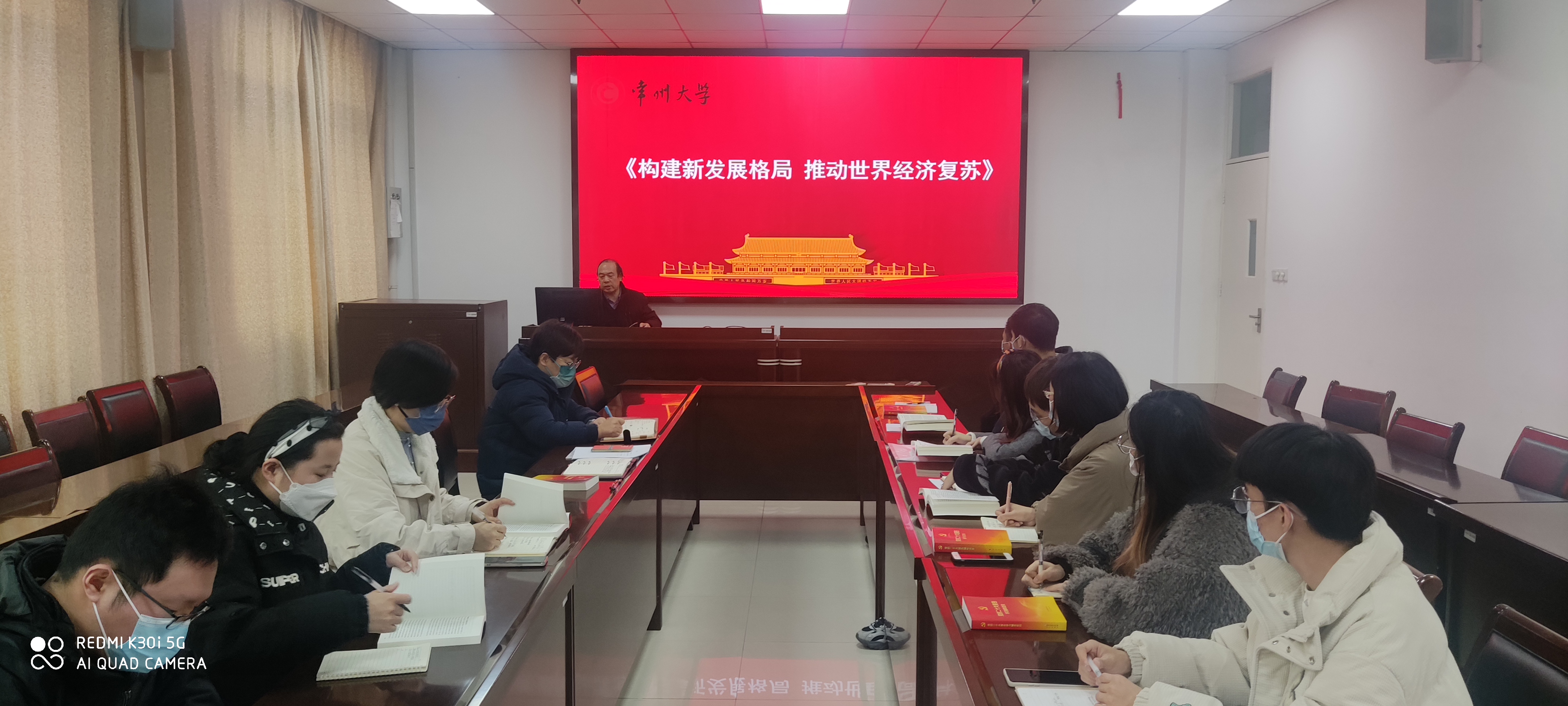 2022年12月8日下午,环境学院党委书记薛荣在明行楼341会议室为学院基层党支部干部作了题为“构建新发展格局,推动世界经济复苏”的专题党课。