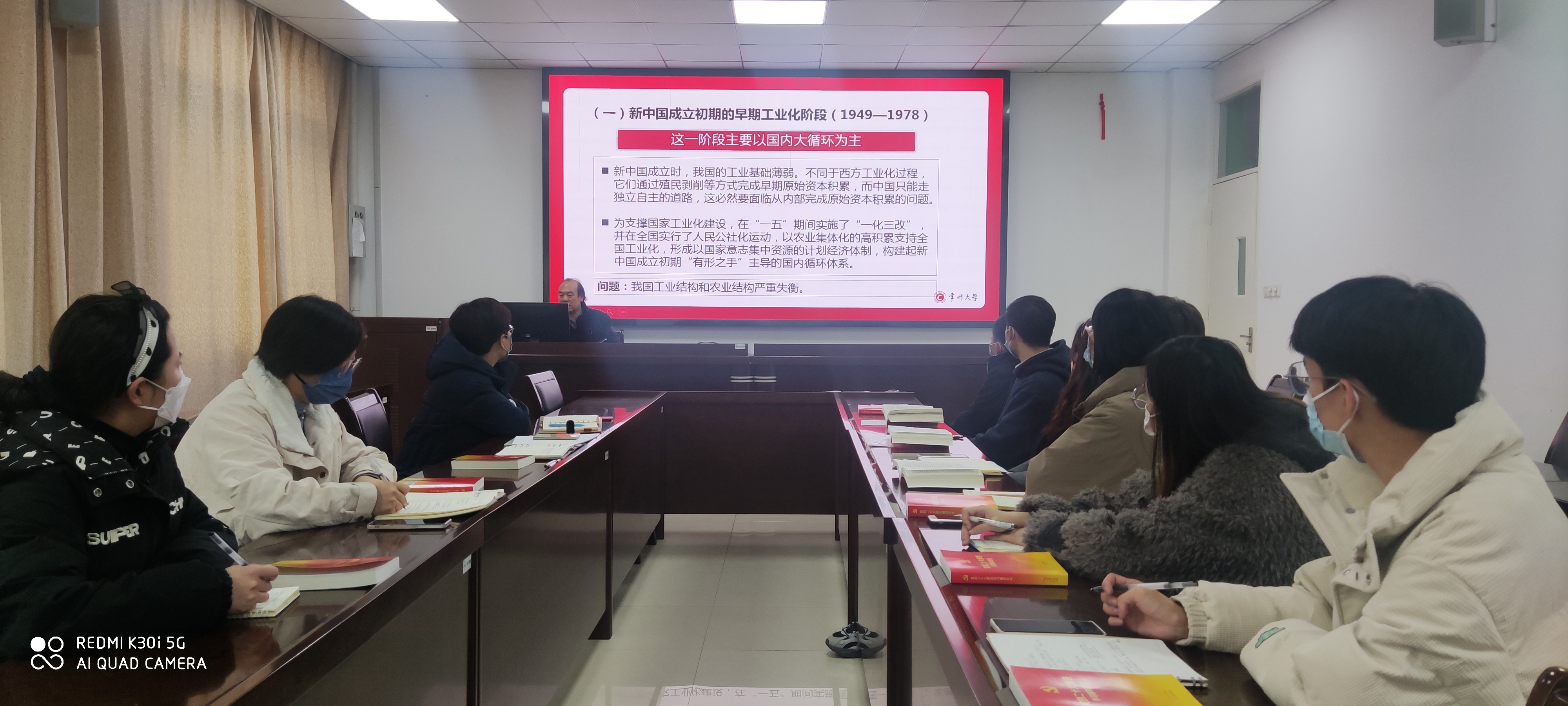 薛荣从新发展格局的历史溯源、提出背景、基本内涵、构建路径、时代价值等方面,抽丝剥茧地讲授了新发展格局的内蕴,以独特见解为学院各党支部骨干讲授何为“新发展格局”,并深入浅出地讲解新发展格局的构建路径。他指出,构建新发展格局需要正确把握双循环要义,以长期全局视角认识双循环新发展格局选择的自主性和必然性;需要重点畅通国内大循环,以结构性改革为重点推动国内经济充分平衡发展;需要稳步推进国际大循环,以规则制度型开放为重点推动构建更高层次的开放型经济;需要构建人类命运共同体,以新的基于规则的国际治理为重点建设开放型世界经济。