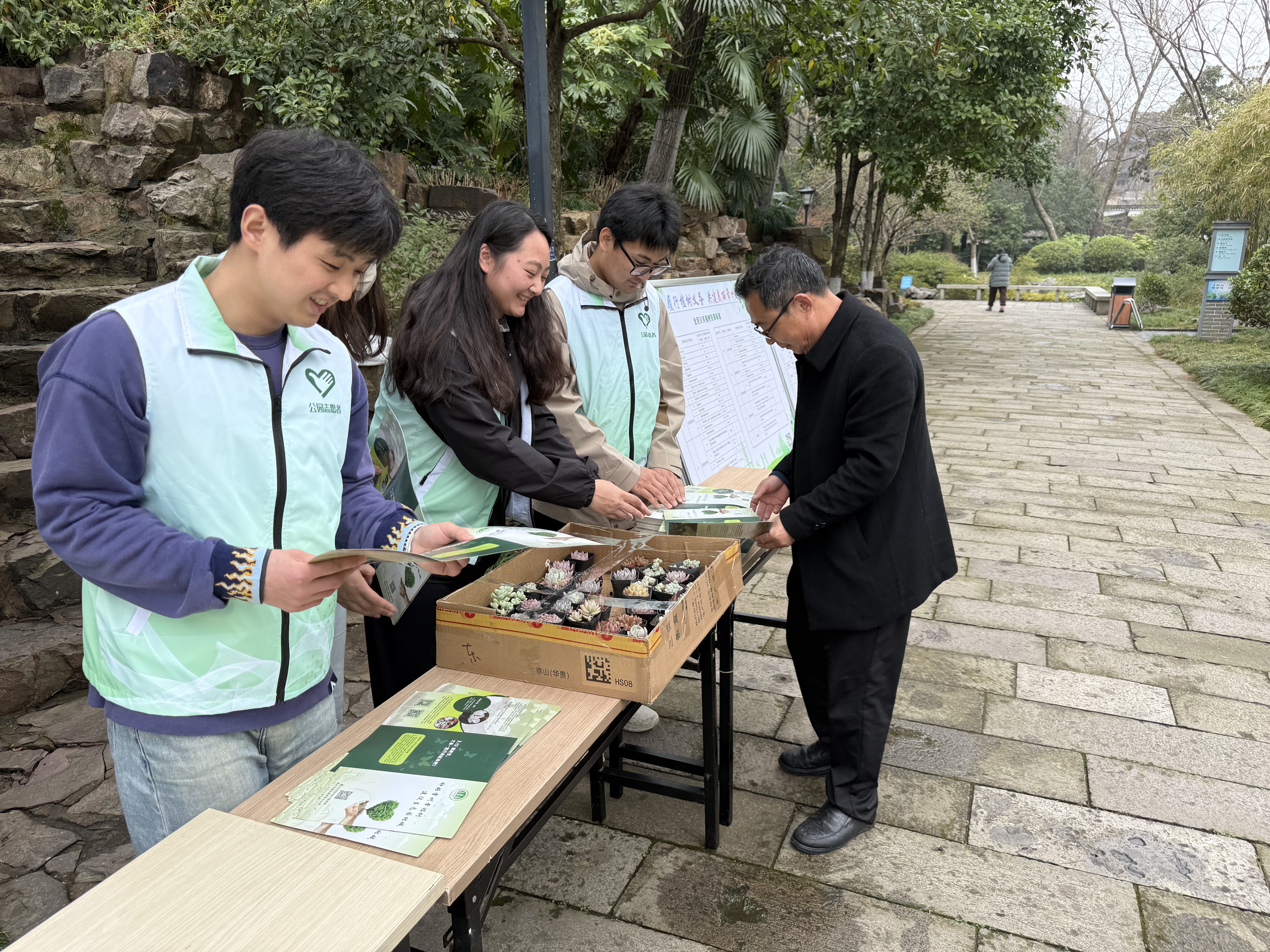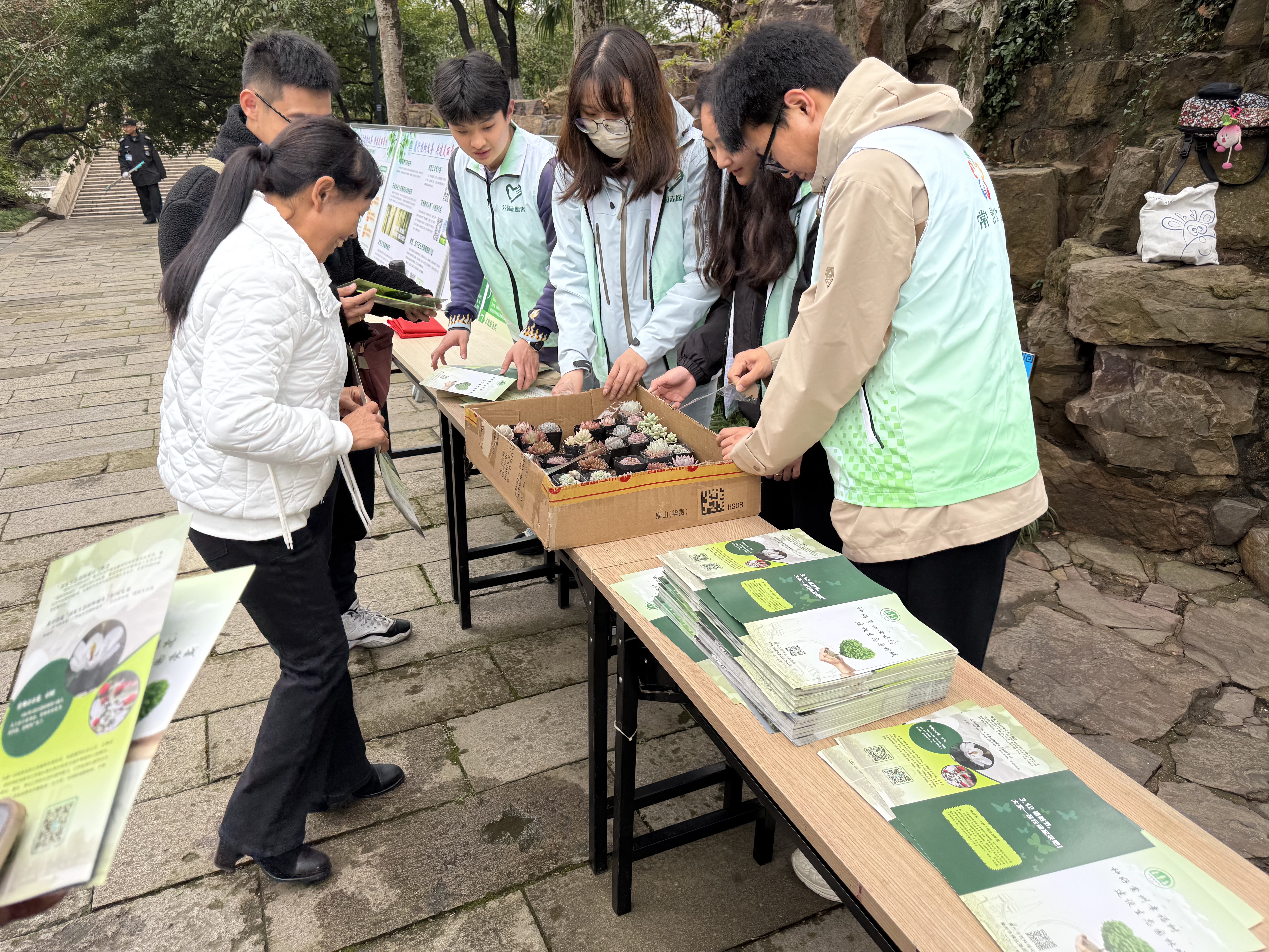 活动现场,党员们在公园的醒目位置精心摆放了图文并茂的展板,涵盖树木对生态系统的关键作用、当前生态环境面临的挑战以及植树造林的深远意义。同时通过互动展位、知识问答、发放宣传册等形式,向公众普及义务植树尽责形式、古树名木保护等,市民还可以通过扫码认养树木,成为“数字园丁”,并获得纪念盆栽。