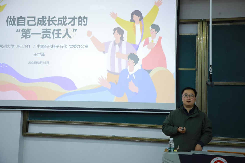 316日晚6W12中国石化扬子石油化工有限公司党委办公室(秘书室)秘书——2018届本科生王世泽回到母校,以“做自己成长成才的‘第一责任人’”为主题,大一新生带来了一场主题鲜明、内容详实的个人成长经验分享讲座。