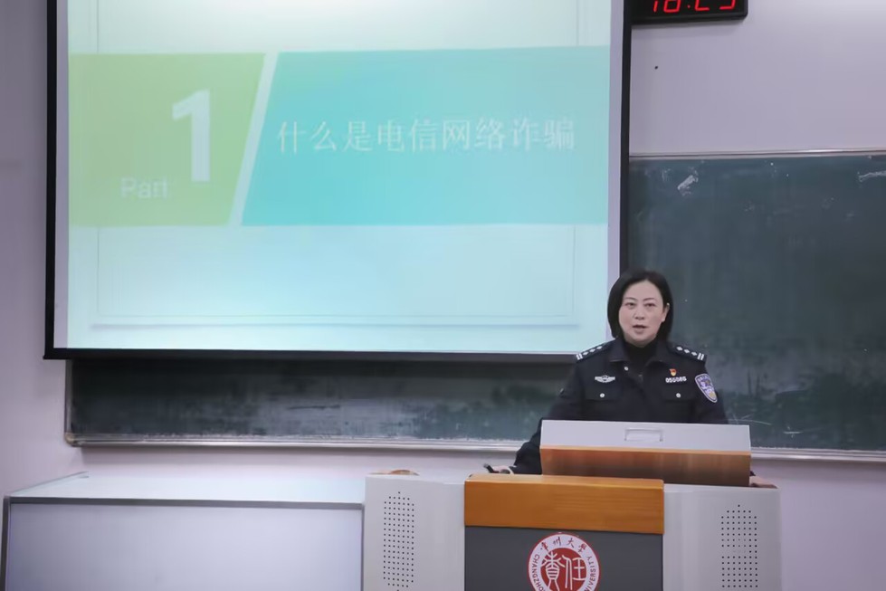 为有效遏制电信网络诈骗案件的发生,提高在校大学生的网络防范意识和识骗能力,2025年4月1日,环境科学与工程学院在W1210开展了反诈专题讲座,邀请常州市公安局武进分局科教城派出所的警官吴明宇为全体24级同学进行科普反诈。