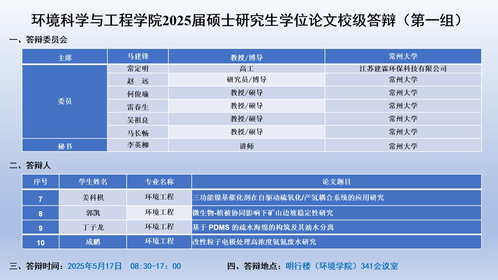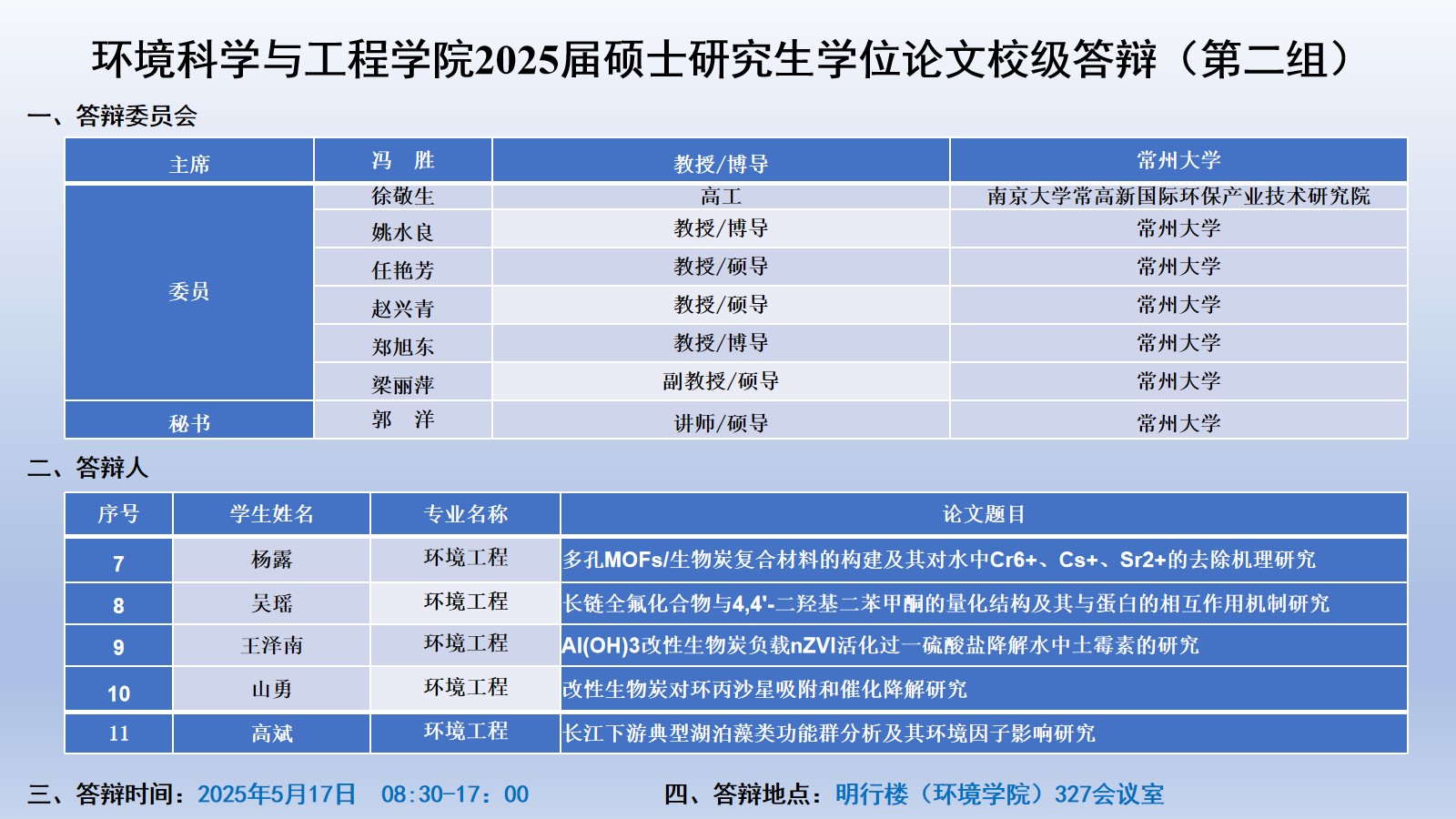 304am永利集团官网2025届硕士研究生学位论文校级答辩安排
