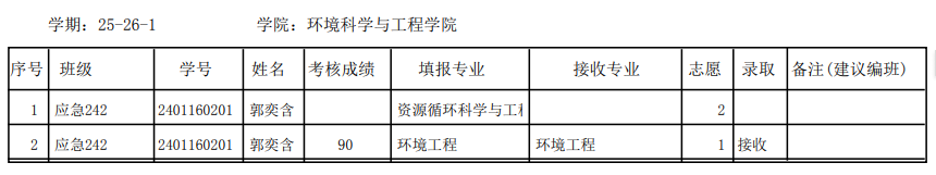25-26-1学期转专业成绩公示